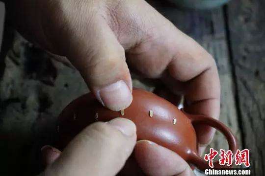 “啪嗒”一聲響,隨著最后一枚鋦釘輕輕按入打好的鋦釘孔中,驚裂的紫砂壺即將修復完成。鋦瓷匠人陳建國檢查完后輕笑道,這時,老手藝人都會跟主人討一杯熱水喝,委婉驗證紫砂壺是否修復好。