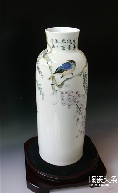 林曉芳的瓷畫作品種類豐富多樣,有釉上新彩、古彩,釉下五彩、青花、高溫顏色釉等。她慣以寫意或兼工帶寫的技法繪畫作品,作品風(fēng)格簡(jiǎn)練灑脫、意境深遠(yuǎn),畫面布局舒適得當(dāng),并且注重留白式繪畫技法。
