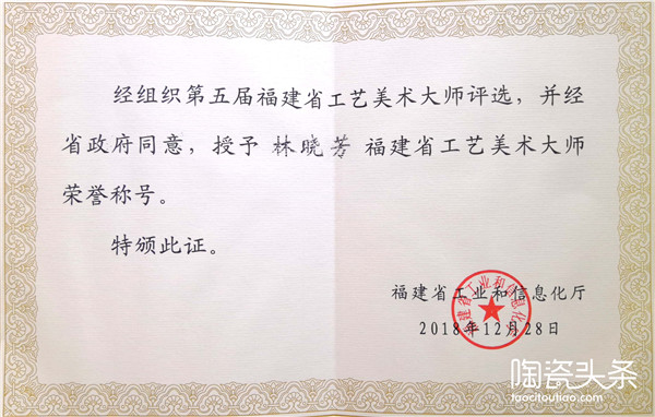 林曉芳,1981年生于德化陶瓷彩繪世家,至此已傳承八代。自幼追隨祖父——知名藝人林質(zhì)彬?qū)W習(xí)繪畫技藝,畢業(yè)于泉州工藝美術(shù)職業(yè)學(xué)院,2017年進(jìn)修于景德鎮(zhèn)學(xué)院國(guó)家藝術(shù)基金高研班?,F(xiàn)為國(guó)家一級(jí)技師、全國(guó)青年崗位能手、福建省工藝美術(shù)大師、福建省陶瓷藝術(shù)名人、泉州市優(yōu)秀青年拔尖人才、泉州市青年五四獎(jiǎng)?wù)?,德化縣肅雅堂陶瓷研究所負(fù)責(zé)人。