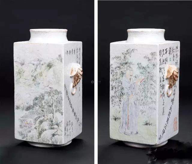清光緒 李蘊輝淺絳彩人物琮式瓶