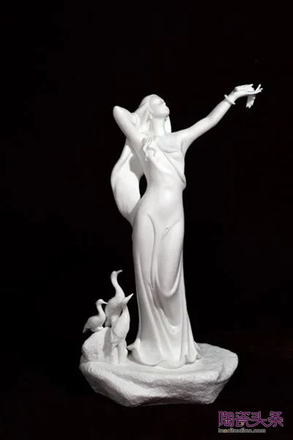 提及柯宏榮,就不免會說起他的伴侶陳桂玉。她同樣是一位創(chuàng)作德化白瓷作品的瓷藝家。夫婦兩人往往聯(lián)手協(xié)作,燒造出兼?zhèn)鋫鹘y(tǒng)白瓷技藝和當代藝術精神的作品。在他們創(chuàng)作國禮作品《鷺島女神》時,兩人因為燒造技術難度大進行了反復的試驗,以完美地呈現(xiàn)自己的藝術構思。這件作品燒造中最難的地方就是半舉的手。他們在創(chuàng)作時必須要把手舉起的高度進行嚴格的控制,這樣才能把女神雕像的優(yōu)美體態(tài)表現(xiàn)出來。但是由于手處于架空狀態(tài),缺乏支持,入窯在高溫中燒制時變得極軟,因此特別容易變形、塌掉。夫婦兩人想了很多辦法,才在幾十件雕像中得到五件完好的成功作品。