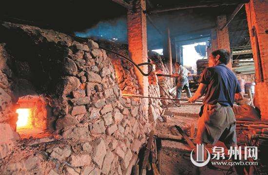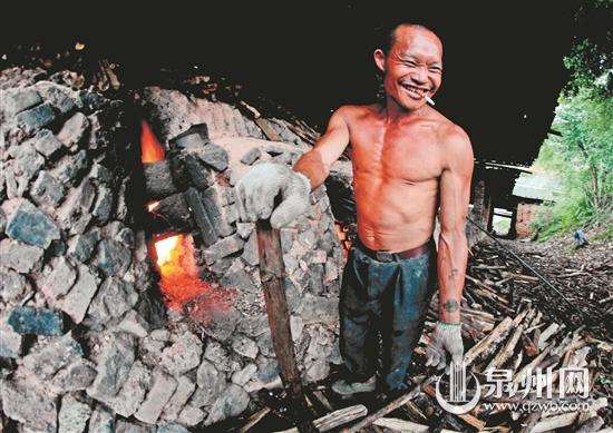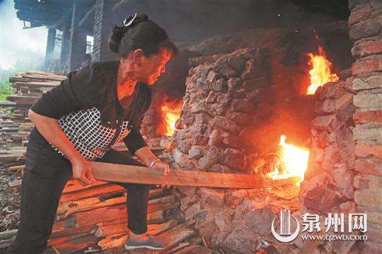 夏日炎炎,德化三班鎮(zhèn)蔡徑村,蒸籠般的窯爐邊,年過(guò)花甲的老窯工馮清桂馮清芳兄弟,正帶領(lǐng)十來(lái)名窯工,大汗淋漓地給燒瓷窯爐腔口不間斷地添柴。