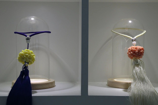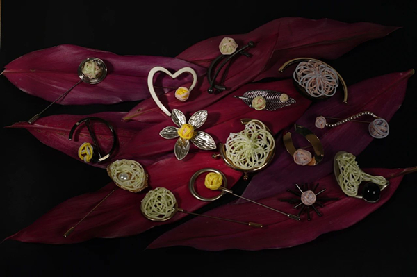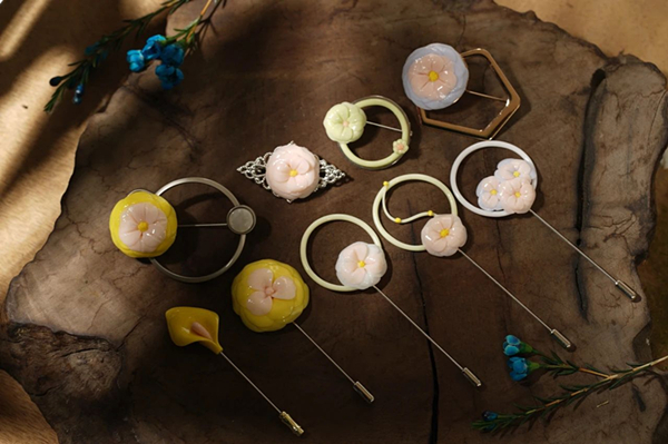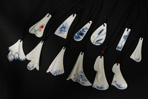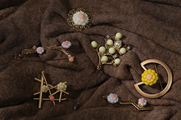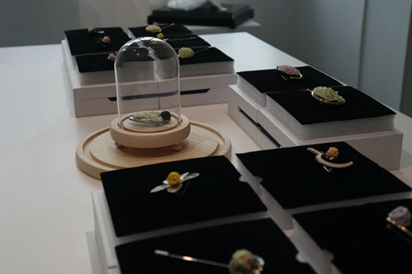 拾巧胸針——主要包含《春》、《夏》、《秋》、《冬》四個系列,除了《春》系列為2019-2020創(chuàng)作,另外三個系列都是藝術家曾巧霞最新力作,也是首次正式面市的新品。藝術家曾巧霞以時尚定義陶瓷,《春》系列遴選多各種花卉進行捏花創(chuàng)作,定義親情、友情、愛情之花;《夏》系列以德化白瓷首飾面和體塊的造型設計,加以手繪青花的點綴,最終以胸針形式面市,既時尚又優(yōu)雅,同時也衍生了何朝宗傳統(tǒng)佛造像的衣紋白瓷青花系列吊墜,《秋》系列以點狀組花的形式進行造型設計,少女心十足;《冬》系列則以盤條組花的形式進行造型設計,線條成球狀、成面狀進行展示,加以時尚的定制金屬配件,在展覽現場最受歡迎。