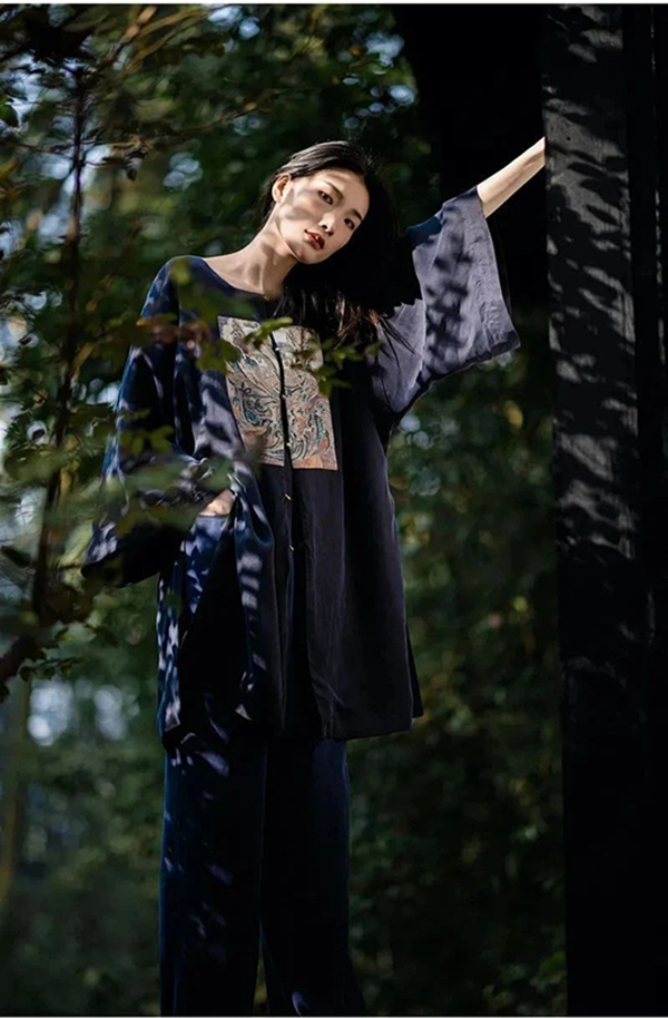徽外——探尋傳統(tǒng)服飾之風雅,希望將蜀錦、傳統(tǒng)文化與當代時尚相結合,在傳統(tǒng)美學和當代藝術之間,尋找一個平衡點和一種適度感,建立一種精致簡約、果敢內斂的東方人文風尚。從《簪花仕女圖》系列、《松下聽琴》系列、《靈山行者》系列、《敦煌壁上觀》系列,到正在創(chuàng)作的《蘇軾》系列,徽外從傳統(tǒng)文學、繪畫、音樂、歷史人物、事件中獲得靈感,然后將“徽外”對時尚和當代藝術的理解融入到設計當中,通過一個個新的視角,重新解讀這些概念與人文精神,感受東方之美的歷久彌新。