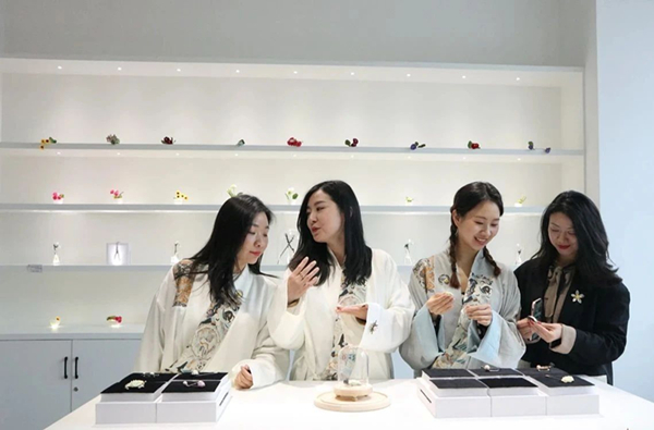 開幕式現場賓客無不被精致的捏花陶藝作品深深吸引,主辦方進行了簡短的開幕式儀式,以輕松愉悅的交流方式順利開幕,而后主辦方聯合時尚高端漢服品牌——“徽外”漢服結合“拾巧”胸針系列進行了一場異業(yè)合作新品發(fā)布。