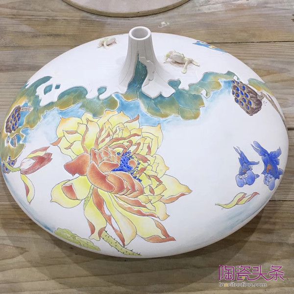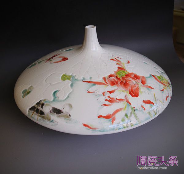 如今,刻、捏、繪三種技法結(jié)合創(chuàng)作已經(jīng)是鄭碧丹瓷繪作品的獨(dú)有特色,它們也是鄭碧丹瓷繪藝術(shù)大膽探索的成果。下階段,鄭碧丹將在此基礎(chǔ)上,繼續(xù)開(kāi)發(fā)飛碟器型系列的瓷繪作品,并努力打造成自己瓷繪藝術(shù)的專有符號(hào)。