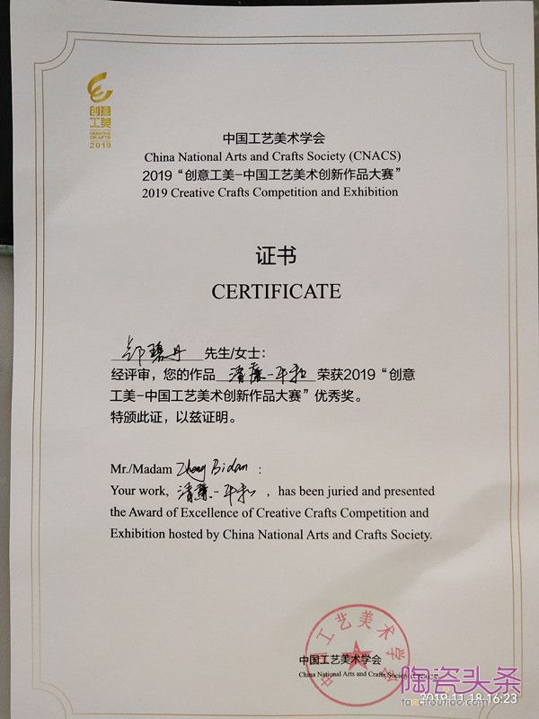 2019年10月《荷趣》入圍第五屆全國(guó)陶瓷技能競(jìng)賽總決賽。