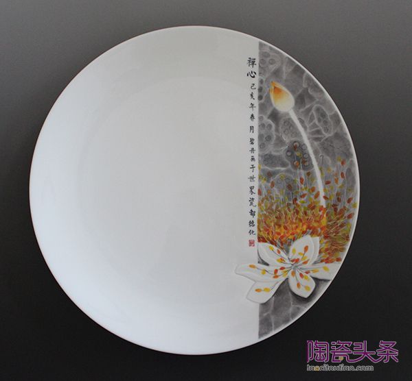但鄭碧丹的瓷繪作品并不只是簡(jiǎn)單的繪畫(huà),雕刻也是她作品中不可或缺的元素。“將雕刻技藝融入繪畫(huà)中,是我在2014年創(chuàng)作《出水芙蓉》的時(shí)候,偶然的一個(gè)小嘗試,通過(guò)雕刻技藝讓荷葉浮起來(lái),從而增加作品的立體感與視覺(jué)的新鮮感。沒(méi)想到該作品榮獲2014中國(guó)工藝美術(shù)“百花獎(jiǎng)”(莆田)評(píng)比“金獎(jiǎng)”。也因此影響了我后來(lái)瓷繪作品創(chuàng)作的方向?!编嵄痰ふf(shuō)。