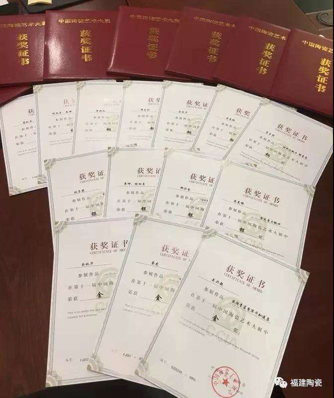 福建省陶瓷行業(yè)協(xié)會(huì)和德化縣陶瓷發(fā)展委員會(huì)辦公室積極組織企業(yè)參加第十一屆中國(guó)陶瓷藝術(shù)大展,德化“”及建陽(yáng)“建窯建盞”共計(jì)300多件作品在龍泉展出。福建產(chǎn)區(qū)66件作品獲獎(jiǎng),其中金獎(jiǎng)11件,銀獎(jiǎng)20件,銅獎(jiǎng)35件。