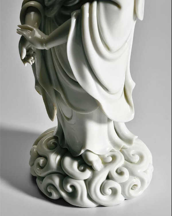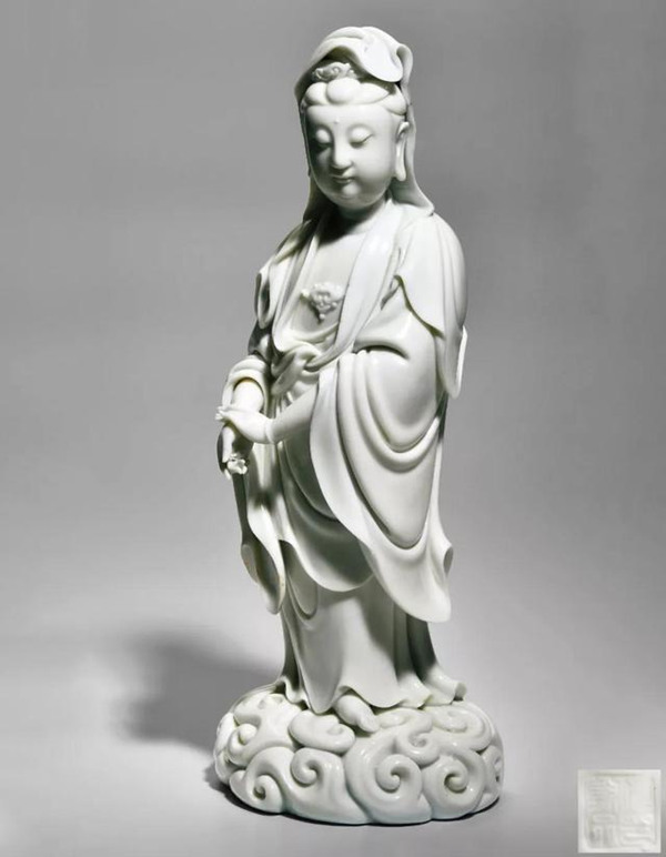 而在我國,北京故宮博物館收藏的一尊何朝宗款達(dá)摩立像被譽(yù)為國寶級文物。此外,泉州海外交通史博物館收藏的何朝宗款“渡海觀音”瓷塑也被評為國家一級文物。因此,在保真的前提下,何朝宗瓷雕作品具有較高的收藏漲值空間。