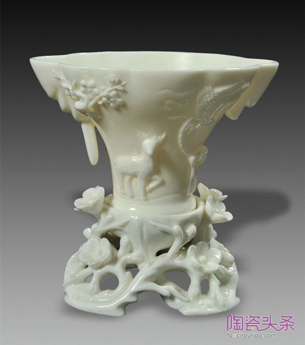 陳明良大師贈送了一件專門為呂建中主席創(chuàng)作的德化白瓷龍虎杯,該杯整體造型呈假山形態(tài),立于以梅花枝干為型的底座上,外壁兩側(cè)分別堆雕龍、虎及梅花鹿、白鷺等紋樣,周邊襯以山石、梅樹,其中,龍、虎紋樣涵意人中龍、虎中王,梅花鹿、白鷺則寓意著“一帶一路”暢通無阻、合作共贏,充分表達了構(gòu)建人類命運共同體的美好愿景!呂建中主席對此龍虎杯愛不釋手,并對陳明良大師的藝術(shù)成就給予了高度的評價和肯定。