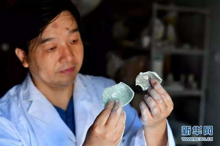 在河南省焦作市修武縣當(dāng)陽(yáng)峪村,“當(dāng)陽(yáng)峪絞胎瓷燒制技藝”國(guó)家級(jí)代表性傳承人柴戰(zhàn)柱在查看絞胎瓷瓷片的紋路。