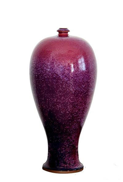 有人說性格決定命運,這句話是否正確暫且不論,但就鈞瓷界來說,性格與作品的風格基本上是一致的?!扳x瓷狂人”李占偉的鈞瓷藝術風格,處處體現(xiàn)著狂放不羈的大氣之美。他大膽進行創(chuàng)新,改變了很多傳統(tǒng)器型的比例、尺度,這是對傳統(tǒng)的顛覆和反叛,也是傳統(tǒng)基礎上的嘗試和創(chuàng)造。如《和尊》,傳統(tǒng)的《合尊》來源于青銅器,廣口、鼓腹、圈足,而李占偉創(chuàng)作的鈞瓷《和尊》,上部極為廣闊,由上而下經(jīng)過自然過渡后極致收縮,下部仿佛即將承受不住上部的重量。“有陶瓷界的前輩看到我這件作品時,說我的比例不對。如果以傳統(tǒng)造型來說,確實如此,但如果你將我的作品看作一朵正在盛放的花朵,就會覺得很合適?!崩钫紓フf。確實,這件作品下部是花的骨朵,上部是盛開的花瓣,搭配鈞紅釉之后,自然而靈動。再如《出戟尊》,李占偉為了使釉面得到更好的表達和展示,將其頂部刪繁就簡,使其形似盛開的蓮花,夸張而又古樸淳厚。還有我們熟知的《玉壺春》,李占偉改變了它從明代以來頸短、腹圓下垂的特征,對其頸部進行拉伸,這和傳統(tǒng)制式有所不同,對此,他的說法是:“頸長,就會顯得瓶式修長。在我的審美里,我認為它美,所以就把其中的部分拉長了,夸張了。大眾審美,隨著時代的變化,也該有變化?!?/span>