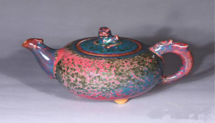 鈞瓷色澤,紅若胭脂朱砂者為最,青若蔥翠紫若墨者次之。這些絢爛奇妙的色彩在燒制中自然形成,即使同施一種釉,一經(jīng)燒成即五光十色,變幻無窮。紅里透紫、紫中藏青、青中寓白、白中泛紅,五彩滲化,相映生輝。在不同光線、不同角度下觀賞各有情趣,耐人尋味,并輒有新意。