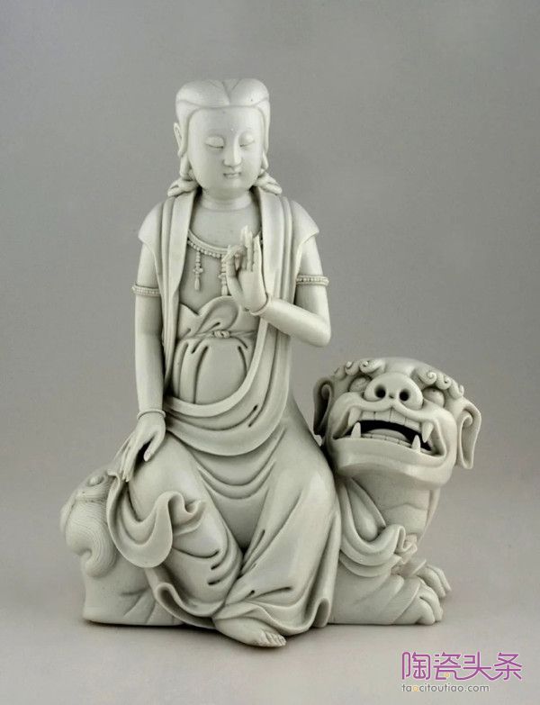 美國(guó)費(fèi)城藝術(shù)博物館收藏清代德化窯白瓷獅吼觀音像