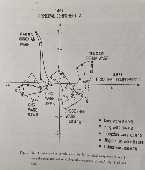 Fig. 14, differences between five Chinese white ceramics in terms of four principal components