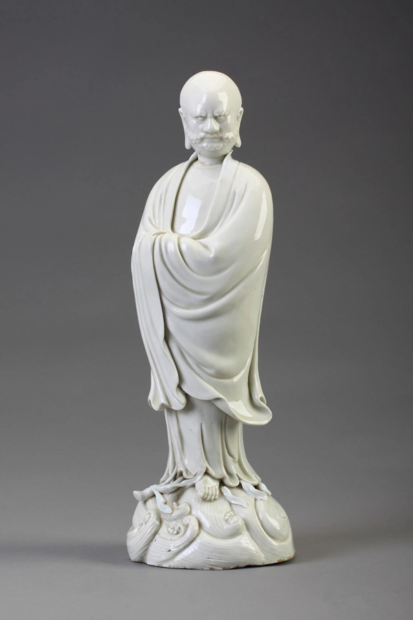 明清德化白瓷以人物瓷塑最為豐富、最具代表性。何朝宗等瓷塑大師著力于瓷塑臉部神情的細致刻畫和衣紋細節(jié)的處理,形成了造型精巧逼真、人物神形兼?zhèn)?、衣紋深秀洗練、線條飄逸流暢的藝術風格。