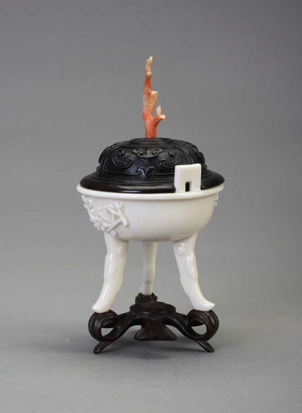 明代白釉堆貼梅花紋三足爐,福建博物院藏▲