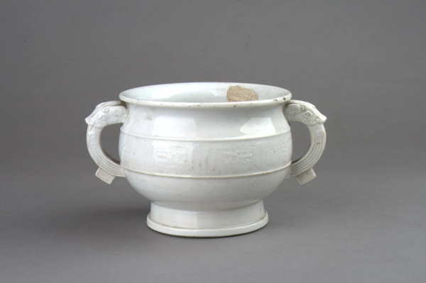 清代白釉印花夔龍紋雙獸耳爐,河北博物院藏▲
