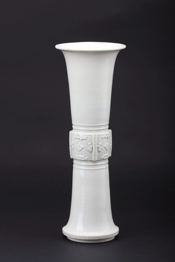清代白釉印花饕餮紋花觚,福建博物院藏▲