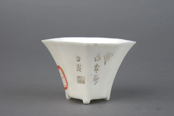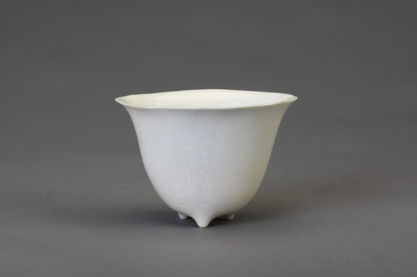 清代白釉刻詩文八方斗形杯,河北博物院藏▲