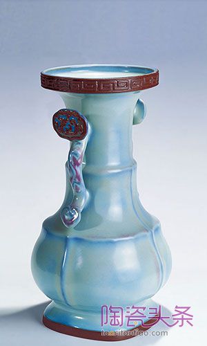 畢業(yè)時(shí),靳林琳設(shè)計(jì)了一件以傳統(tǒng)風(fēng)格為基調(diào)的鈞瓷花器,獲得老師們的一致好評。至今,這件作品依舊作為畢業(yè)生的優(yōu)秀代表作,被擺放在大學(xué)的展示櫥窗里。