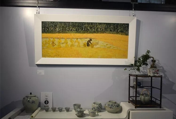與第一回展覽有所不同的是:本次展覽的主角齊冬根是一位地道的農(nóng)民,他從未經(jīng)受過(guò)正統(tǒng)的美術(shù)教育,卻畫出一幅幅生動(dòng)有趣的作品?!短飯@牧歌》、《曬秋》、《修茶園》、《古韻》、《思兒早歸》、《一團(tuán)合器》、《纏枝蓮將軍罐》、《似錦》、《荷趣》……展覽現(xiàn)場(chǎng),記者看到齊冬根創(chuàng)作的作品具有謎一般的夢(mèng)幻色彩。那寥寥數(shù)筆勾勒出的女人形體,或扭曲、或變形、或臃腫的那寥寥數(shù)筆勾勒出的女人形體呈現(xiàn)出一種舒適隨性的身體語(yǔ)言,令人耳目一新;“笨拙”的筆觸,隨意而狂亂的田園風(fēng)景系列作品給人一種放蕩不羈的感覺(jué)。同時(shí)展廳中遙窯生活器的生活器皿器型借鑒了傳統(tǒng)紋飾但又不是完全照搬傳統(tǒng),紋飾更偏簡(jiǎn)潔;尤其是灰地青花瓷,與日常慣見(jiàn)的白地青花相比,有一種古拙趣味,令人倍感親切。