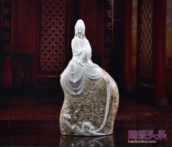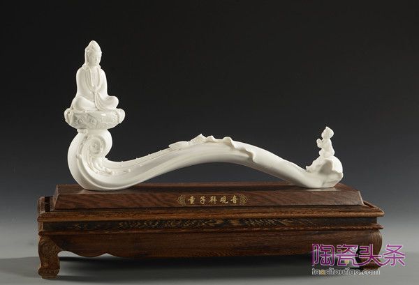 如他創(chuàng)作的作品《渡海觀音》,大膽放棄了傳統(tǒng)何派衣紋的構(gòu)造手法,以一片簡(jiǎn)潔的荷葉塑身姿。大意簡(jiǎn)練的海浪設(shè)計(jì),將簡(jiǎn)約的手法貫徹到底,精細(xì)傳神的面部刻畫,又讓我們看到了賴瑞攀扎實(shí)的雕塑技藝,也讓我們看到了有別于瓷圣何朝宗《渡海觀音》的創(chuàng)作手法。“我就想在繼承傳統(tǒng)的基礎(chǔ),有所突破,有所創(chuàng)新,我希望自己的作品能帶給別人新鮮感、獨(dú)特感。這件作品在今年還榮獲“中國(guó)(醴陵)國(guó)際陶瓷產(chǎn)業(yè)博覽會(huì)”展品大賽金獎(jiǎng)。”賴瑞攀介紹道。