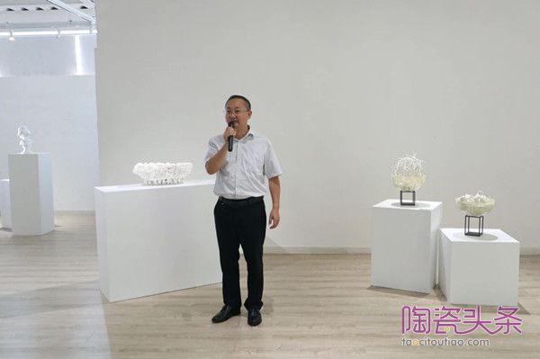 支持單位之一錦江區(qū)文化館館長張紅波首先祝賀展覽的開幕,在致辭中他分享了多德化陶瓷歷史的深刻了解并說到今天的展覽內(nèi)容十分豐富,有代表德化當(dāng)代藝術(shù)語言的陶瓷藝術(shù)作品,還有代表傳統(tǒng)元素的茶空間展品,這個展覽在很大意義上讓觀者更加深刻的認識和了解了德化白瓷藝術(shù)。