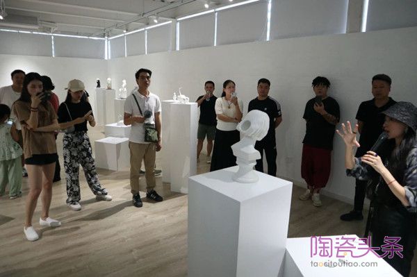 開幕式結(jié)束后,策展人涂秋敏帶著觀眾進行了主展廳和茶空間現(xiàn)場講解導(dǎo)覽,對參展藝術(shù)家和展出的德化白瓷作品進行了詳細講解。