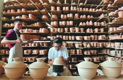 大元陶瓷運用傳統(tǒng)跳刀工藝與臺灣釉水結(jié)合研發(fā)陶瓷新品。