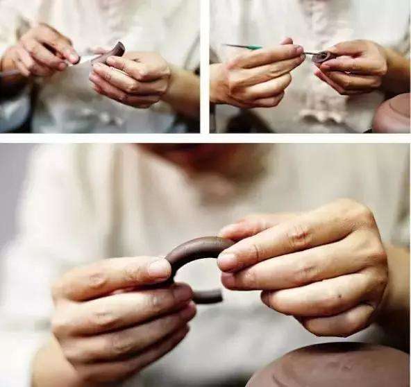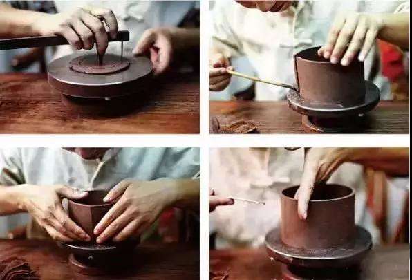 紫砂器成型的主要方法是手工捏作。手工成型的關鍵在于泥胚成型技巧的規(guī)范恰到好處及表面的精細加工。精細地刮平修正,可以使器形結構更加嚴謹,輪廓線條分明得體,筋囊文理清晰,達到珠圓玉潤、渾然一體的制作要求。