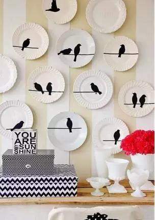 ▲ 本來安靜的墻,因?yàn)橛辛诉@些可愛的鳥兒,變得生動(dòng)起來。盤子上的鳥兒很像五線譜,墻上的盤子則若音樂,都是跳動(dòng)的樂符和靈動(dòng)感。