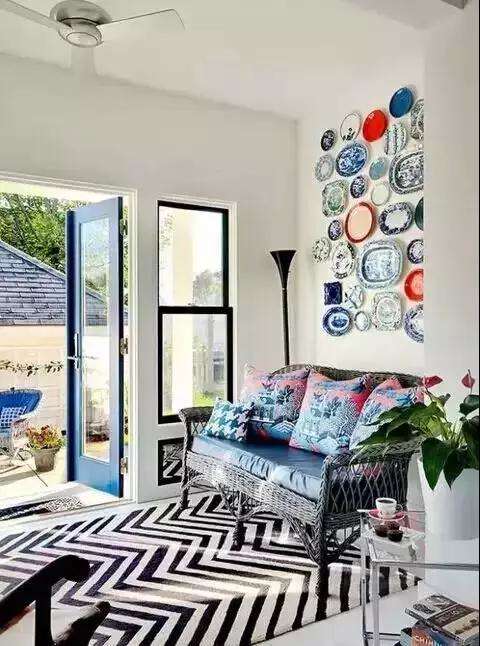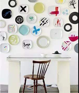 用盤子代替原本的照片或者畫,掛在簡(jiǎn)單素凈的墻上,通過盤子本身顏色、形狀的搭配,可以給整個(gè)室內(nèi)效果帶來更大的突破。