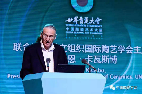 聯(lián)合國教科文組織國際陶藝學(xué)會主席托比恩·卡瓦斯博也發(fā)表了講話。與china同行,與世界對話,高度肯定了龍泉青瓷的藝術(shù)地位,希望共同推動中國的青瓷藝術(shù)走向世界。