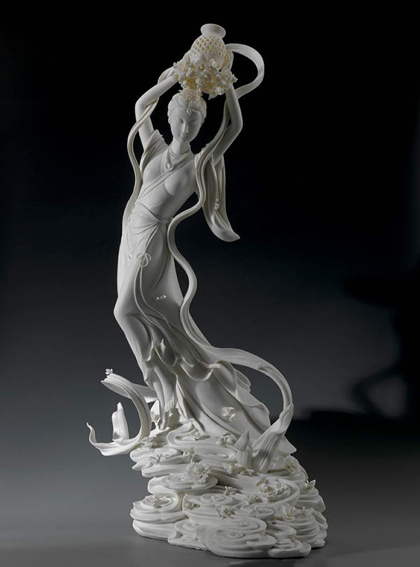 “建白瓷歷來大多應用于瓷觀音等瓷雕藝術瓷和花瓶、香爐等陳設瓷,德化是一個以雕塑而形成的瓷都產業(yè),在世界上做瓷塑規(guī)模最大的就只有中國德化?!?,中國陶瓷藝術大師、非物質文化遺產(德化瓷燒制技藝)國家級傳承人許瑞峰介紹,明代是德化瓷業(yè)史上雕塑工藝最為興旺的時期,民間的能工巧匠如何朝宗、張壽山、陳偉、林朝景等人,吸收泥塑木雕等傳統(tǒng)技藝,師古而不泥古,善于應用瓷器胎釉的質感特點,精心燒制各種形象的道釋人物,無論造型神態(tài)還是線條處理都刻劃細膩、表現(xiàn)逼真,達到了高度的藝術水平。