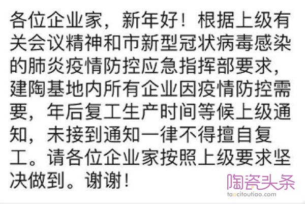 今起 陶瓷行業(yè)將迎來前所未有的復(fù)工戰(zhàn)“疫”