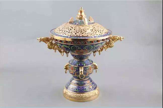 大件器物不失青銅器的氣概與魄力,小件器物則有瓷器的造型,清秀可愛卻又更加堅固。它們以變化多姿的造型、精湛嚴(yán)謹(jǐn)?shù)墓に?、富麗輝煌的色彩以及鮮明的民族特色,展現(xiàn)了景泰藍(lán)這一繼夏商周青銅器之后的又一金屬工藝上的奇跡。