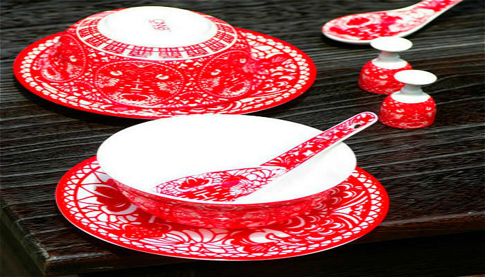 剪紙是我國千百年來文化歷史積淀的產(chǎn)物,集中全面的體現(xiàn)了我國民間美術(shù)的造型觀念、審美觀念和哲學(xué)觀念,釋放著特有的藝術(shù)魅力,這套陶瓷餐具的釉面圖案就是一套奇妙的剪紙,只要放上桌面,喜慶的中國風(fēng)撲面而來,是一款非常適合婚宴場合使用的日用陶瓷產(chǎn)品。