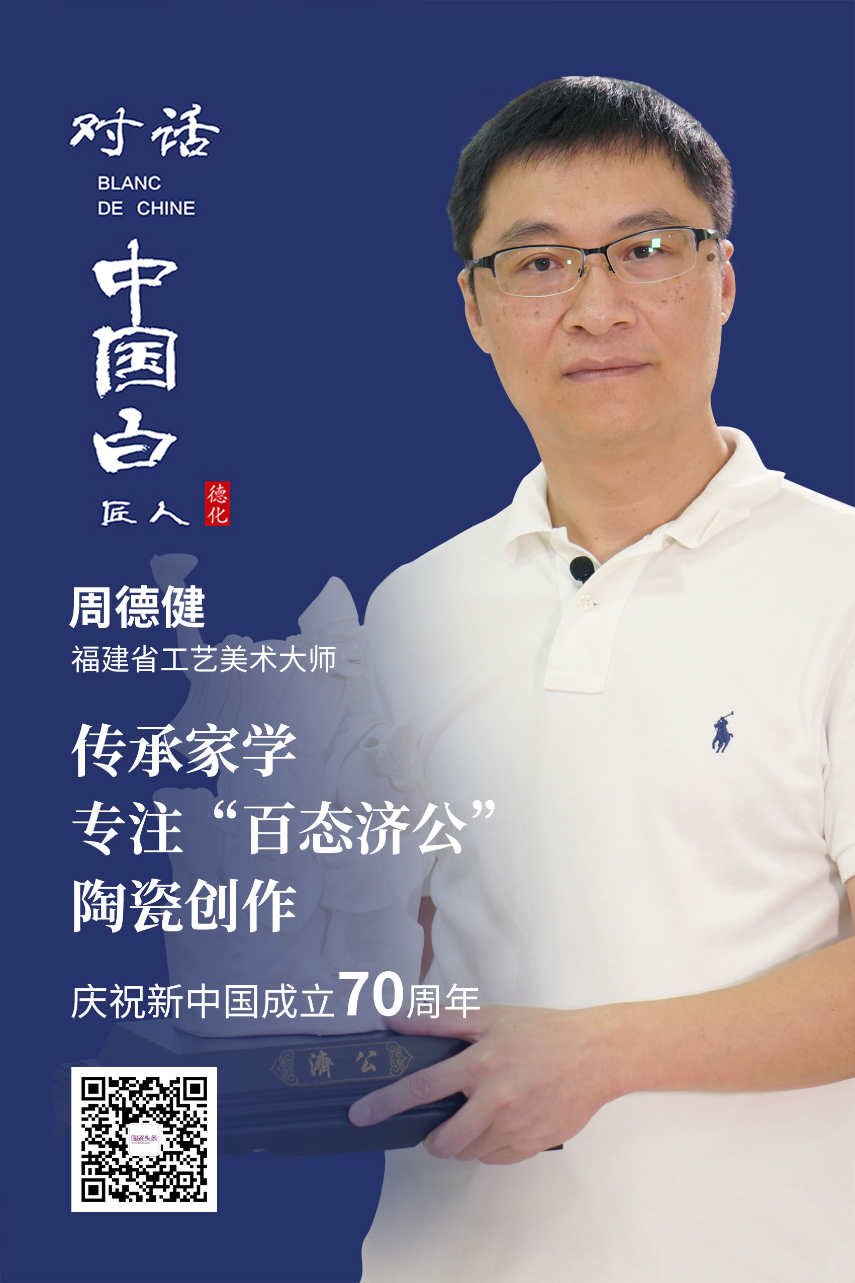 編者按:周德健應(yīng)用德化傳統(tǒng)瓷雕技藝,專注百態(tài)濟(jì)公系列作品創(chuàng)作多年,對(duì)濟(jì)公形象熟爛于心,性格也深受其影響,變得瀟灑隨性,因此,有人也稱他為周濟(jì)公。