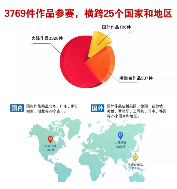 值得一提的是,本次大賽的國(guó)內(nèi)作品涵蓋北京、廣東、浙江等29個(gè)省市。國(guó)外作品包括美國(guó)、英國(guó)、德國(guó)、新加坡、荷蘭、西班牙、土耳其、日本、韓國(guó)等25個(gè)國(guó)家和地區(qū)。