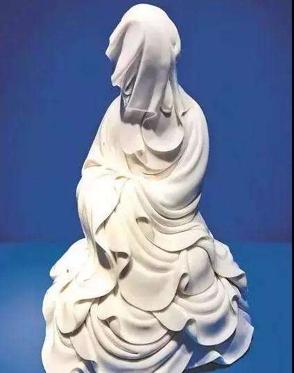 在形象刻劃上,德化瓷吸收了石窟藝術的養(yǎng)分,衣紋處理則深得中國畫以線造型的神韻,綜合石刻、木雕、泥塑等多門類技法特點,將雕塑美和材質美完美融合,作品氣勢縱橫、節(jié)奏頓挫、疏密有致。