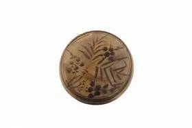 此罐造型如小鼓(圖1),通高10.8、口徑9.9、足徑7.6厘米,子母口,整體造型規(guī)整,繼承了北方定窯的風(fēng)格。胎色灰白不堅(jiān)致。蓋破補(bǔ),蓋口磕,罐磕缺多處。蓋頂微隆,蓋沿短直,施褐色弦紋不等間距三至四道。蓋面(圖2)雜繪梅竹紋,畫風(fēng)粗獷、寫意,畫面較滿,卻充滿生趣,極富民間喜樂的天真趣味。桶形腹,微鼓,矮圈——平底。罐內(nèi)壁有明顯的旋輪紋痕(圖3)。外腹偏上主圈以兩個(gè)不完全封閉的對(duì)稱開光為裝飾主圖,其內(nèi)各繪一折枝梅。開光外為海水波濤紋,口沿下,主圈以下脛部,各施不等間距弦紋數(shù)道。畫風(fēng)粗獷,氣韻疏朗,天真有趣。