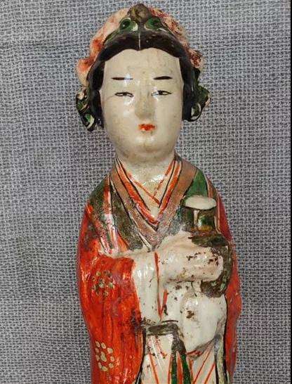 “德州窯出土的紅綠彩瓷器是我國陶瓷藝術(shù)中色彩濃艷、風格鮮明,極具民間特色的彩瓷”,德州職業(yè)技術(shù)學院副教授、紅綠彩陶瓷畫師霍云芳介紹說,燒制方法是在高溫燒成的白釉器上用紅、綠為主等彩料勾畫紋飾,再入窯800 ℃低溫燒制的釉上彩繪瓷器。因此也常被 稱為“宋加彩”或“金加彩”。主色為紅、綠、黃三色為主 , 色彩對比強烈。裝飾紋樣以花枝、云紋等紋樣居多,局部施紅彩,并有濃淡之分。整體裝飾以紅彩勾勒為主,填涂為輔,線條流暢舒展,有艷麗明艷之感。德州窯的紅綠彩瓷加入黑色居多,人物俑五官衣紋均是黑色描出,衣服施紅、綠色塊;日用器皿主有有碗、盤、罐、瓶、紅綠彩縛捆嬰兒與摩睺羅、人物俑等,反映出北方人民的生活特征,具有鮮明的地域特色。