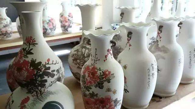 ▲桃源鎮(zhèn)昌隆陶瓷廠的工人正在薄坯花瓶上作畫。