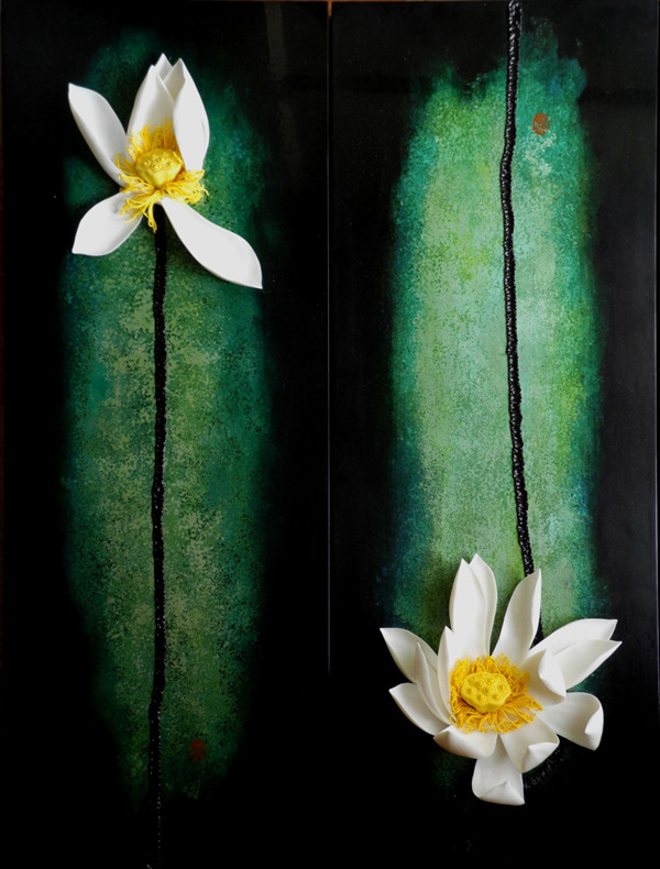 然而,黃國(guó)鑾卻是與眾不同的。多年的現(xiàn)代雕塑創(chuàng)作經(jīng)驗(yàn),以及秉承的追尋不同的創(chuàng)作理念,讓他在德化走出了一條獨(dú)樹一幟的藝術(shù)道路。創(chuàng)作的第一件作品《一品青蓮》,就以其獨(dú)特靈動(dòng)的風(fēng)荷姿態(tài),創(chuàng)新的大漆工藝結(jié)合,在2011年上海“東方明珠杯”陶藝評(píng)選中獲得銀獎(jiǎng)。“荷花造型千姿百態(tài),見慣了燦爛盛開的靜態(tài)造型,品一品風(fēng)中搖曳的多姿造型也是別有一番風(fēng)味。”黃國(guó)鑾說道。