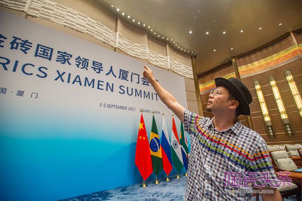 回想起這段創(chuàng)作經(jīng)歷,黃國(guó)鑾坦言道,“限定三個(gè)月的創(chuàng)作周期,設(shè)計(jì)方案確定就用了一個(gè)月時(shí)間,制作和安裝的時(shí)間只剩緊迫的兩個(gè)月時(shí)間?!钡?,多年的一線陶瓷創(chuàng)作經(jīng)驗(yàn),沉著冷靜的處事態(tài)度,別出心裁的創(chuàng)作構(gòu)思,讓黃國(guó)鑾順利完成了這項(xiàng)艱巨的任務(wù),并受到社會(huì)的充分肯定。他個(gè)人還被授予金磚國(guó)家領(lǐng)導(dǎo)人廈門會(huì)晤籌備和服務(wù)保障工作“先進(jìn)個(gè)人”稱號(hào)?!暗浆F(xiàn)在,我都很佩服當(dāng)初承接這個(gè)項(xiàng)目的信心和勇氣。”黃國(guó)鑾喝了一口茶,笑著說道。