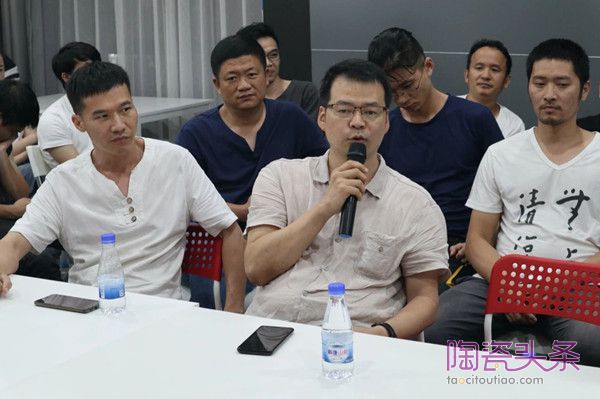 介紹環(huán)節(jié)結(jié)束,正式進(jìn)入分享會的互動交流環(huán)節(jié)。互動從主持人拋出的問題:“談?wù)勛约憾嗄晁囆g(shù)生涯的感悟和自己的創(chuàng)作方向?”開始,來自成都的駐留藝術(shù)家首先進(jìn)行分享,他們同時也分享了他們來德化駐留十幾日的創(chuàng)作學(xué)習(xí)心得。緊接著,與會的部分大師新秀、陶瓷營銷高手、德化縣陶瓷發(fā)展研究院代表也一一進(jìn)行了分享,本次邀請的大師新秀德漂者居多,他們中有來德化遠(yuǎn)則十幾年的也有近的4年多的,此環(huán)節(jié)對他們而言有更多的發(fā)言權(quán)。