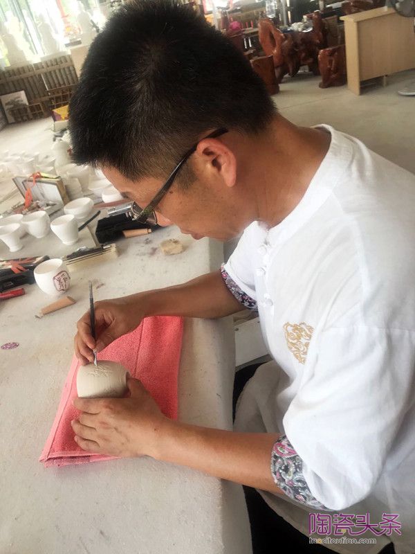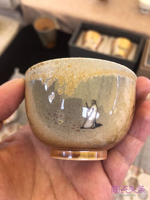 在這里,筆者看到了張移峰與眾不同的柴燒。除了火痕、落灰、釉面變幻這些共性,筆者關(guān)注到這里的柴燒多了一縷詩(shī)情畫意,器皿上一幅幅別出心裁的小畫讓古樸的作品多了別樣的風(fēng)情。在柴燒器皿上作畫,張移峰是德化第一人,這也成為他獨(dú)特的標(biāo)簽。