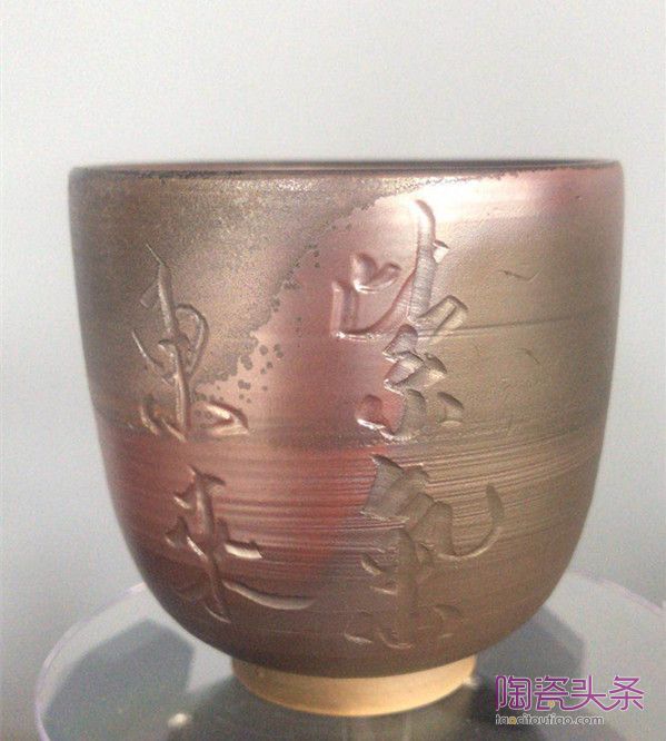 除了畫畫,張移峰還在作品上刻字。蒼勁有力的漢字讓原本安靜的作品一下子活了起來(lái),與器物釉面效果交相輝映,更顯柴燒質(zhì)感。